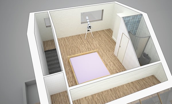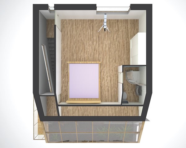 Following client request, second floor became almost completely occupied by the master bedroom with much smaller storage spaces. In addition to that, small bathroom space with shower facility was introduced on the South East corner of the bedroom.